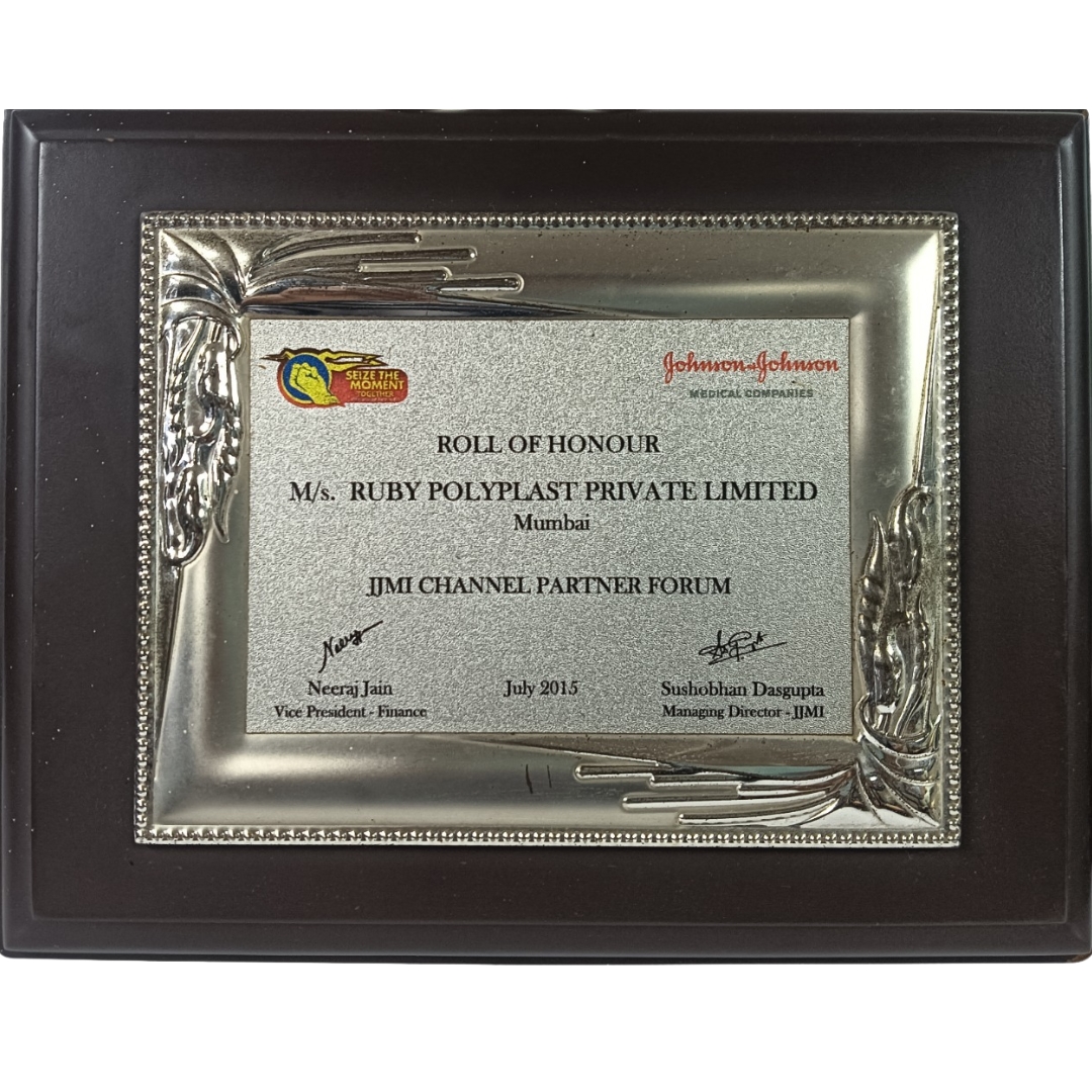 Roll of Honour Awarded to Ruby Polyplast Pvt. Ltd. during Mumbai JJMI channel Partner Forum.